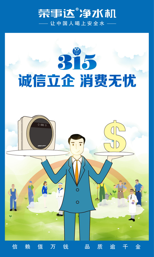 榮事達(dá)肩負(fù)保障飲水安全的使命,將大企業(yè)大品牌的責(zé)任心落在實(shí)處,以誠信立企,以誠信塑品牌,在推動(dòng)創(chuàng)造誠實(shí)守信、公平有序的市場環(huán)境之中,成就企業(yè)價(jià)值!
