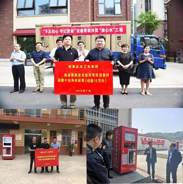 山區(qū)孩子喝上健康水- 此外,為解決部分貧困地區(qū)“因水致病 因病致貧”的難題,榮事達(dá)積極響應(yīng)國(guó)家“精準(zhǔn)扶貧”號(hào)召,責(zé)任上肩,擔(dān)當(dāng)作為,大力發(fā)展健康扶貧事業(yè)。前不久,榮事達(dá)攜手團(tuán)省委、省青聯(lián)啟動(dòng)“青力扶貧 聯(lián)創(chuàng)夢(mèng)想”健康扶貧“放心水”工程,榮事達(dá)向安徽地區(qū)貧困村捐贈(zèng)凈水設(shè)備,建立健康扶貧水站,讓村民們喝上健康水。建立“健康扶貧水站”是榮事達(dá)參與建設(shè)貧困地區(qū)飲水健康保障體系的重要措施,在為村民們提供干凈無(wú)污染的飲用水環(huán)境的同時(shí),有效防止“病從口入”,實(shí)現(xiàn)健康脫貧。目前榮事達(dá)已在河北邯鄲、金寨縣漆店村、阜南縣王家壩村等多地建立扶貧水站,成功解決當(dāng)?shù)鼐用耧嬎踩珕?wèn)題。
