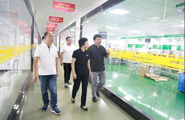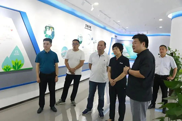 領導一行先后參觀了榮事達智能化生產車間和智慧水世界展廳,了解榮事達企業綜合實力及十大水處理系統具體發展狀況,現場體驗了企業最新研發定制產品與自主開發的物聯網校園智慧管理系統,并為榮事達行業領先的技術實力點贊。